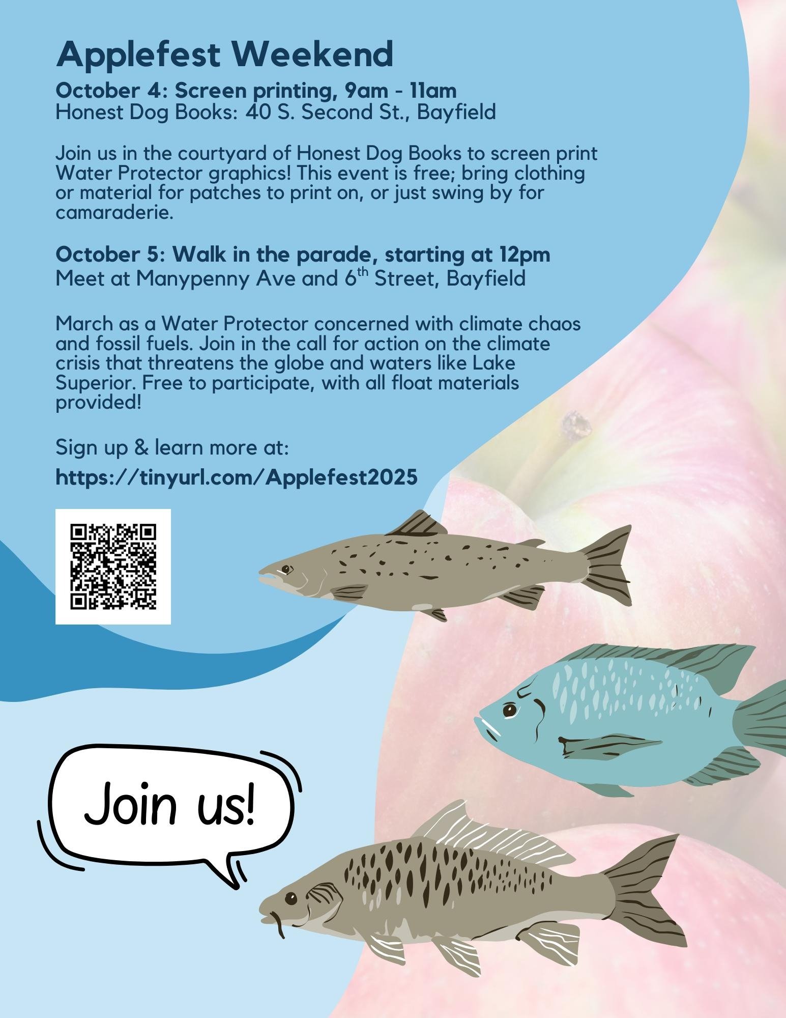 March with us as a Water Protector ! Join the call for action on the climate crisis that threatens the globe and waters like Lake Superior. Free event, all float materials are provided! We've got lots of puppets, banners, and signs and need more people to help us in the parade. Consider wearing something blue […]