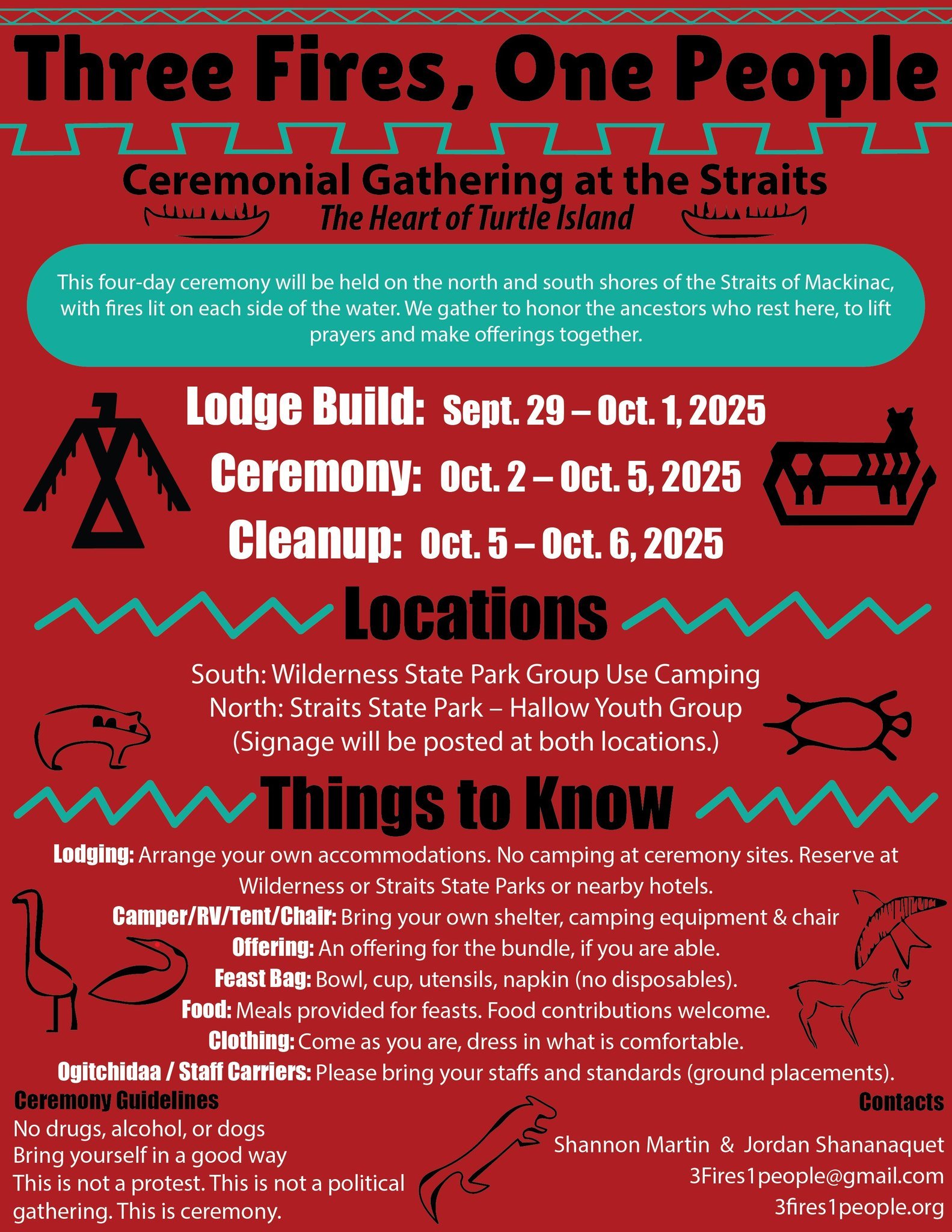 We are calling upon all who love the ancestors, Creation, Mother Earth & her waters to support a Four-Day Ceremony taking place simultaneously on the north and south shores of the Straits of Mackinac--the Heart of Turtle Island.
